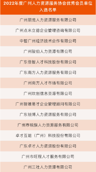 为进一步提升我市人力资源服务专业化、规范化和规模化发展水平,树立行业典型,大力推动人力资源服务业健康蓬勃高质量发展,广州人力资源服务协会组织开展了2022年度人力资源服务评选活动。