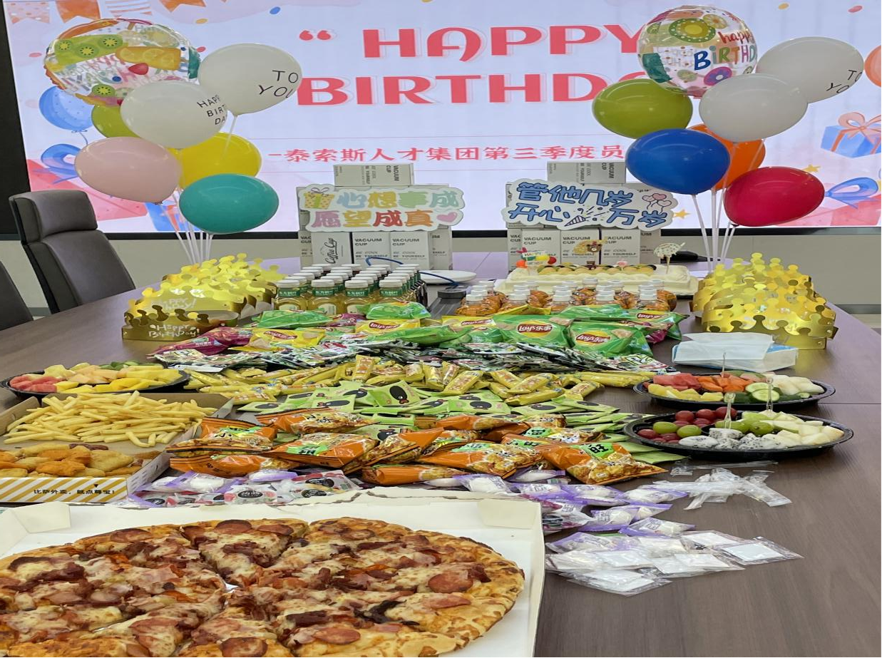 这次生日对每位伙伴都非常有纪念意义,能够与公司及朝夕相处的小伙伴一起度过生日,分享生日的喜悦是非常开心和荣耀的。生日会这一活动也增加了泰索斯人才集团大家庭的互动交流、加深彼此之间的联结,为大家传递更多的欢乐与幸福。