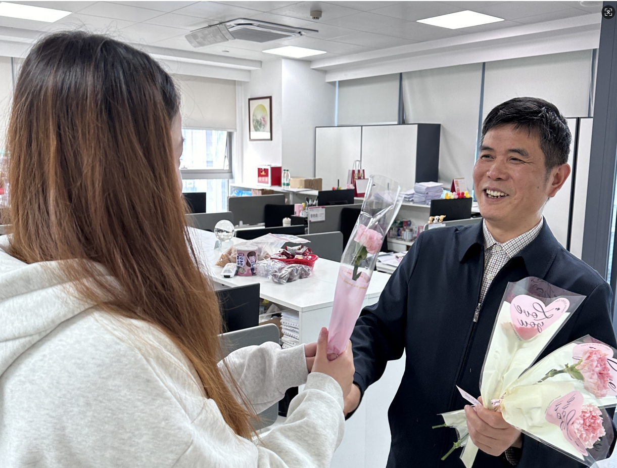 活动当天,集团领导班子化身“送花使者”,将满载祝福的鲜花与礼品亲手送到每一位女职工手中。接过礼物的那一刻,惊喜与感动在眉眼间漾开。耳畔是此起彼伏的“女神节快乐!”“辛苦了!”,抬眼处,温馨融洽的氛围已在空气中静静流淌。